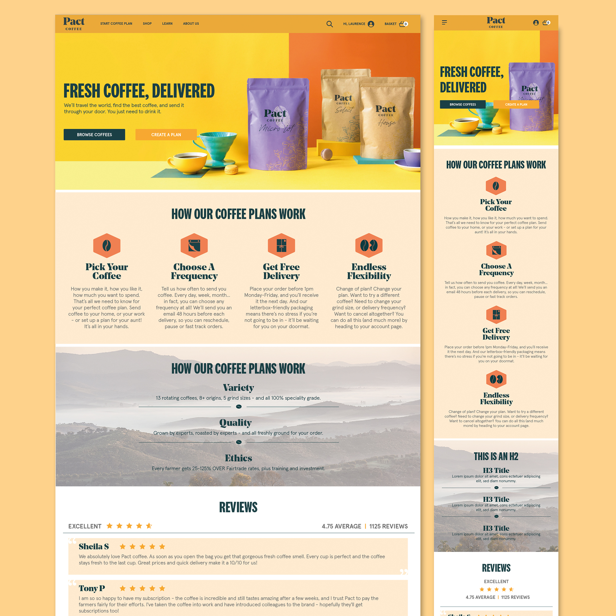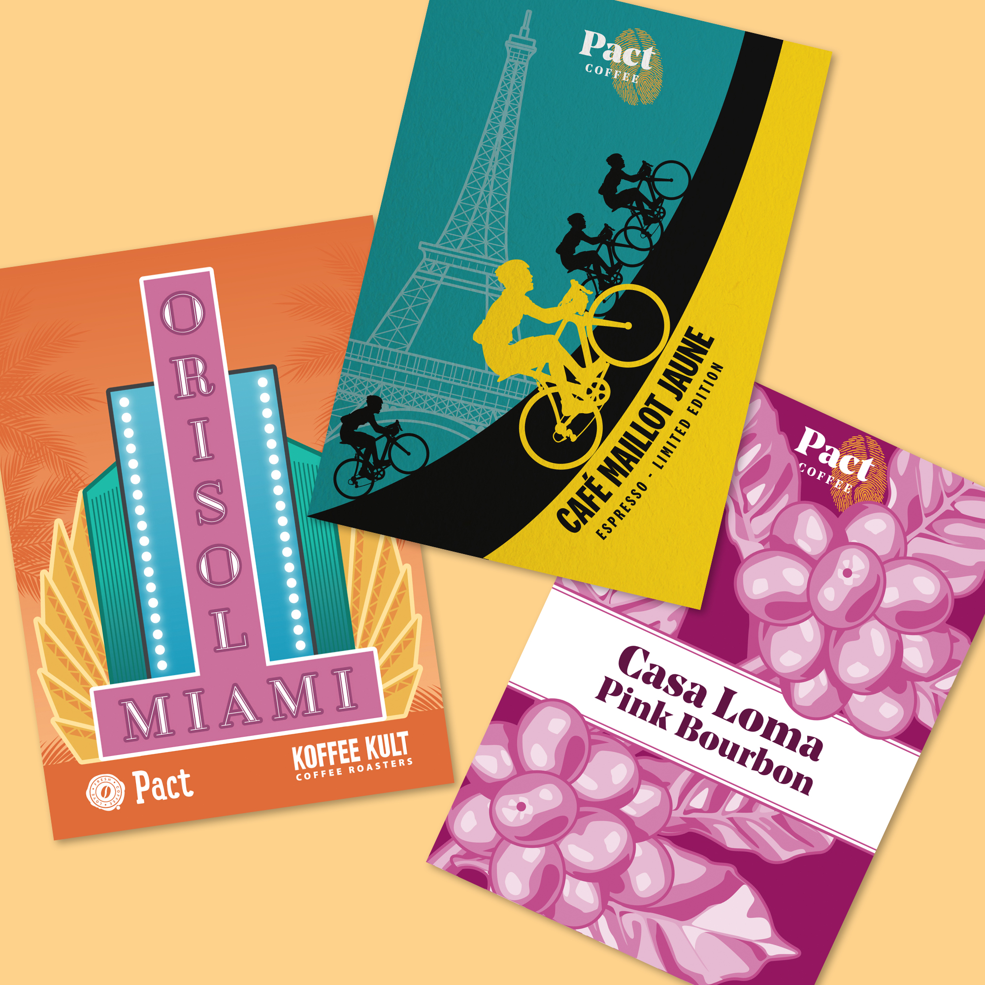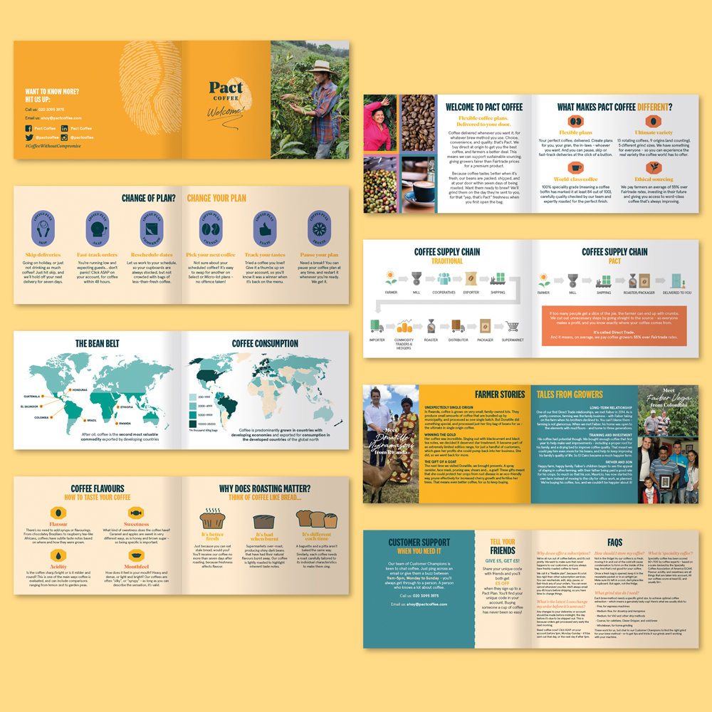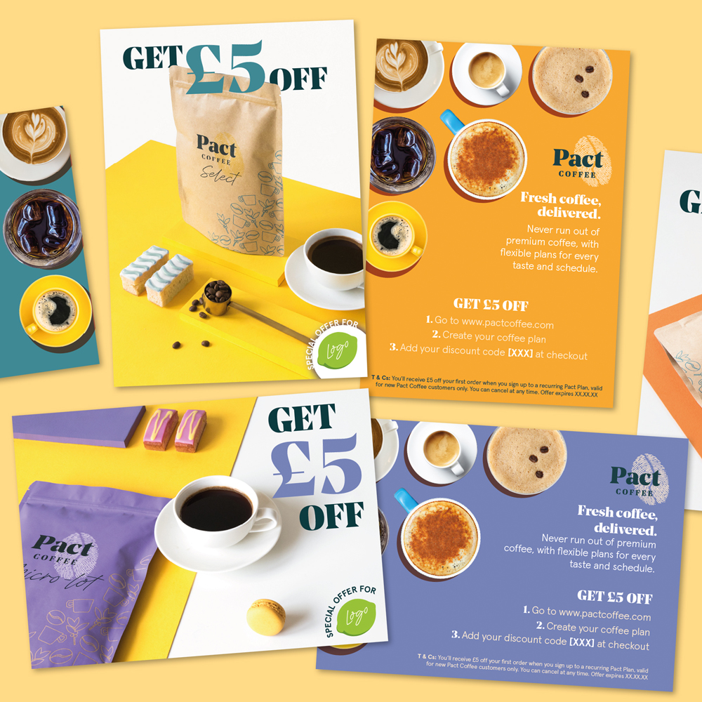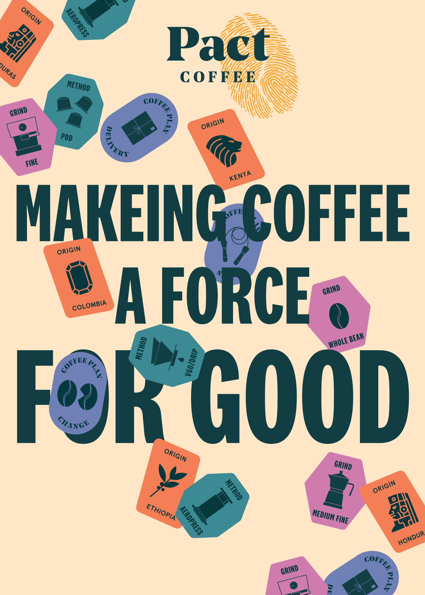 While working for Pact Coffee as the Lead Designer I worked on the rebranding along with an agency brought in to help. I was able to set and develop a strong look and feel for the illustration and design style for both on and offline. I worked on the website, packaging, event collateral and digital advertising and enjoyed the variety of the work. Creating all the little elements like coffee flavour notes was a fun project to work on and had pleasing results.
